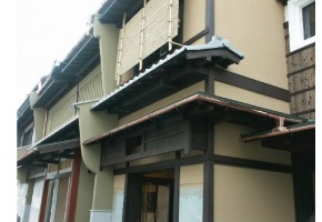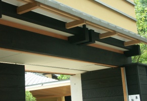 南禅寺店の工事にご使用頂いた際に気に入って頂き、 新築の清水店でもご使用頂ける事となりました。 大きな柱や梁に塗装するので、事前に大工さんに塗装して頂いた木を組み立てて建築されています。 これも施工が簡単なニューわびすけならではの塗装方法です。