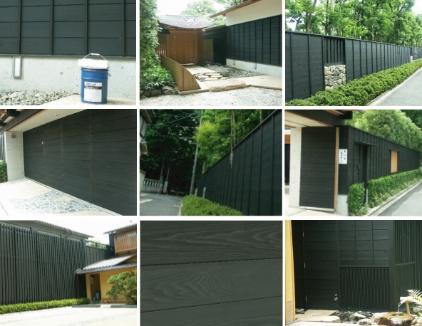 塀の内壁、外壁共にモクショクの黒を御使用頂きました。 木目が綺麗に出ているのがお分かりでしょうか? 浸透性塗料ならではの仕上がりです。